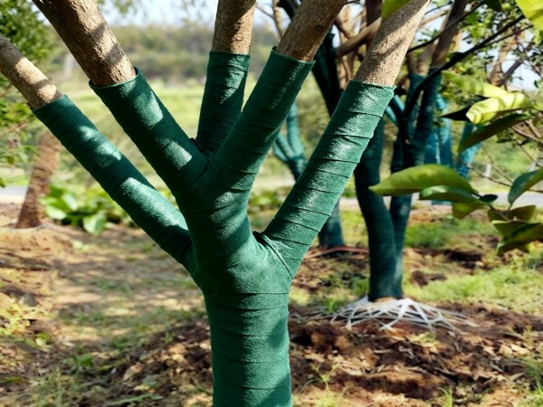 缠绕前检查树干,发现病害或损伤需先涂抹树木愈合剂。新生嫩枝及分叉处需用软质材料衬垫,避免布面直接摩擦形成损伤。